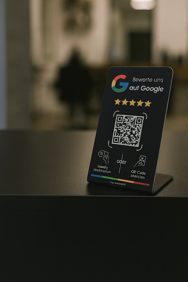 Ja, der QR-Code kann individuell angepasst werden, um direkt zu Ihrem Google-Bewertungsformular zu führen. So personalisieren Sie das Erlebnis für Ihre Kunden und steigern die Wahrscheinlichkeit, dass sie eine positive Bewertung abgeben.